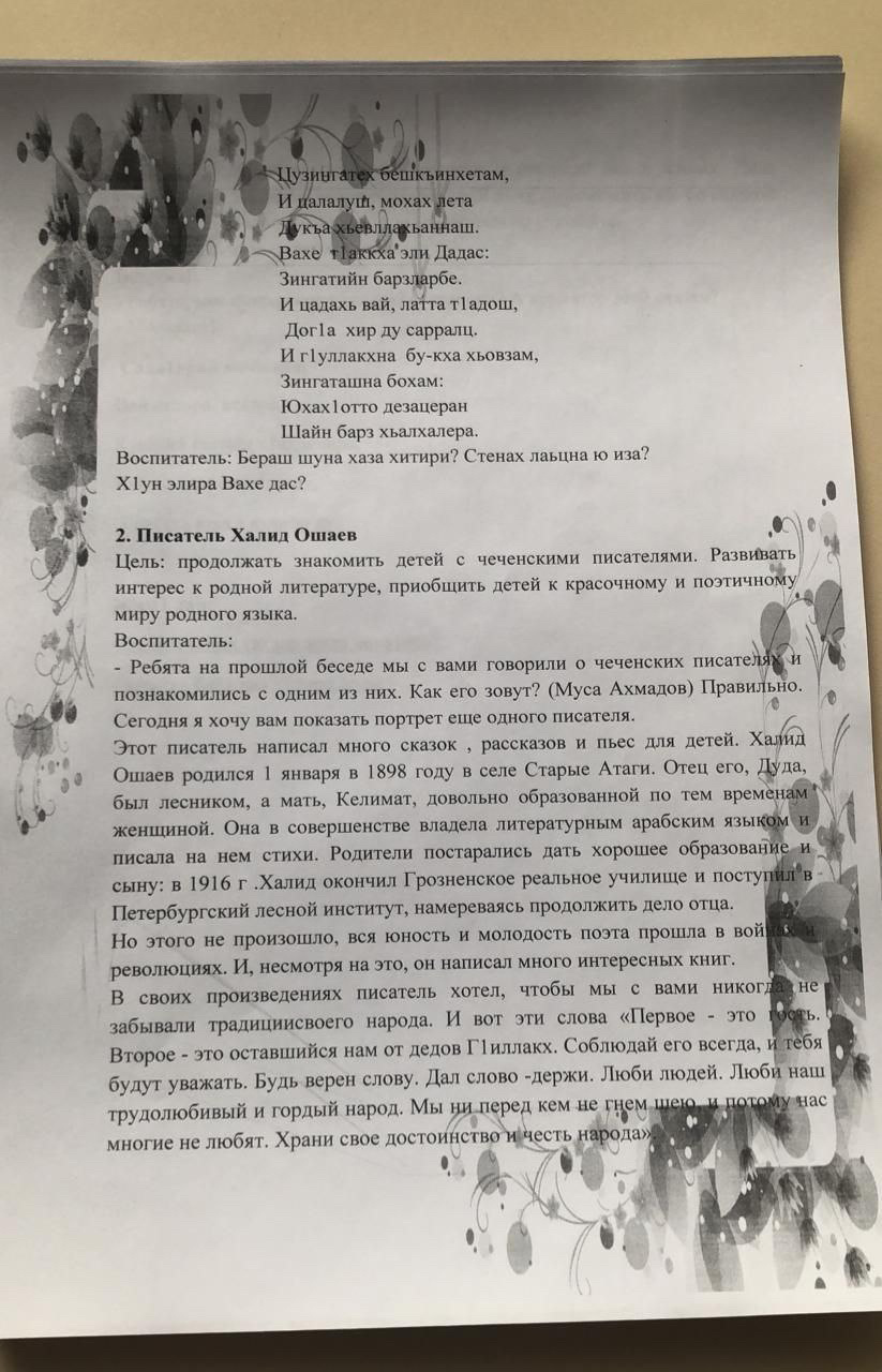 ООД на тему: "Путешествие в мир творчества чеченских писателей"