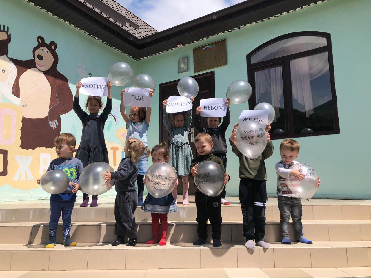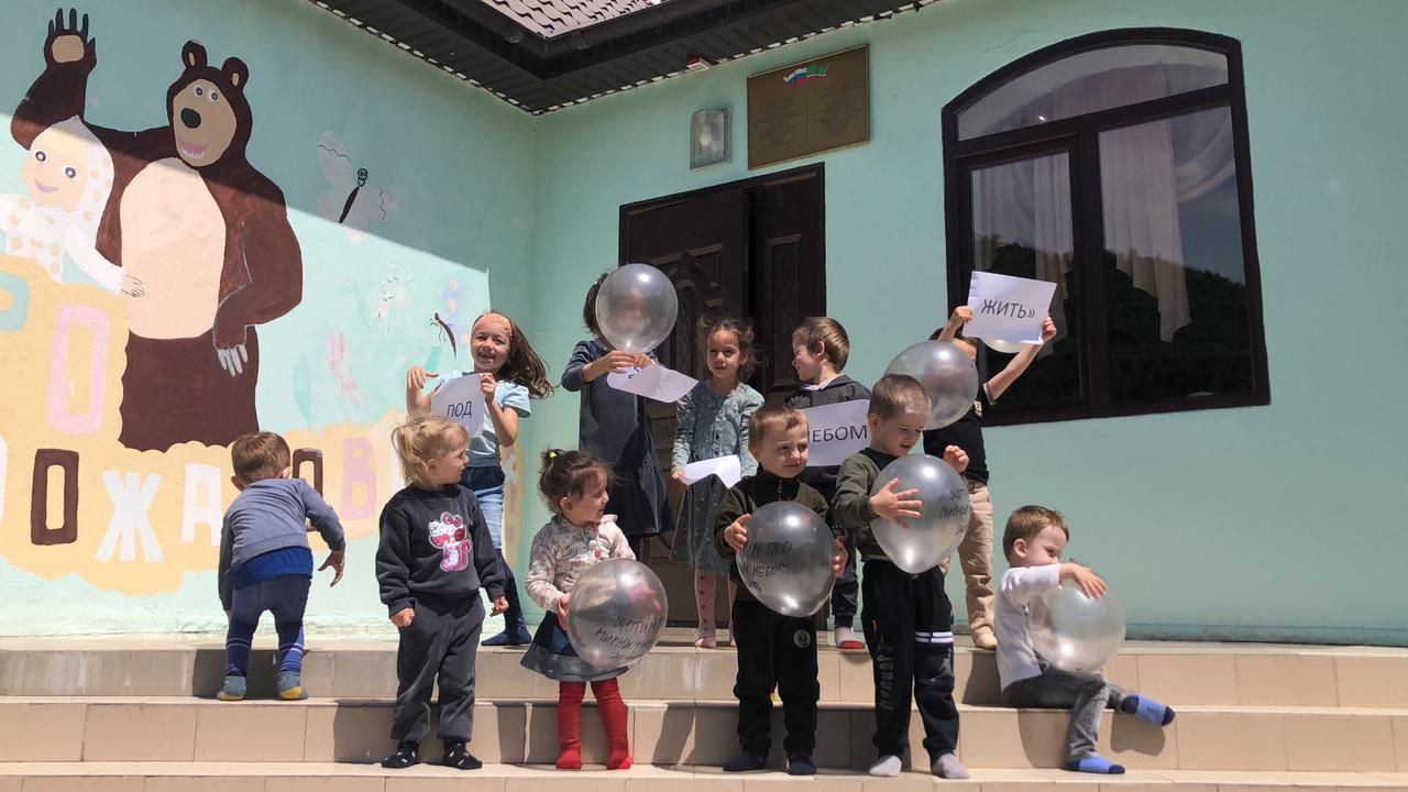 Меропрития посвящённые Дню памяти и скорби народов Чеченской Республики. Проведения флешмоба и запуск воздушных шаров под девизом "Хотим под мирным небом жить"