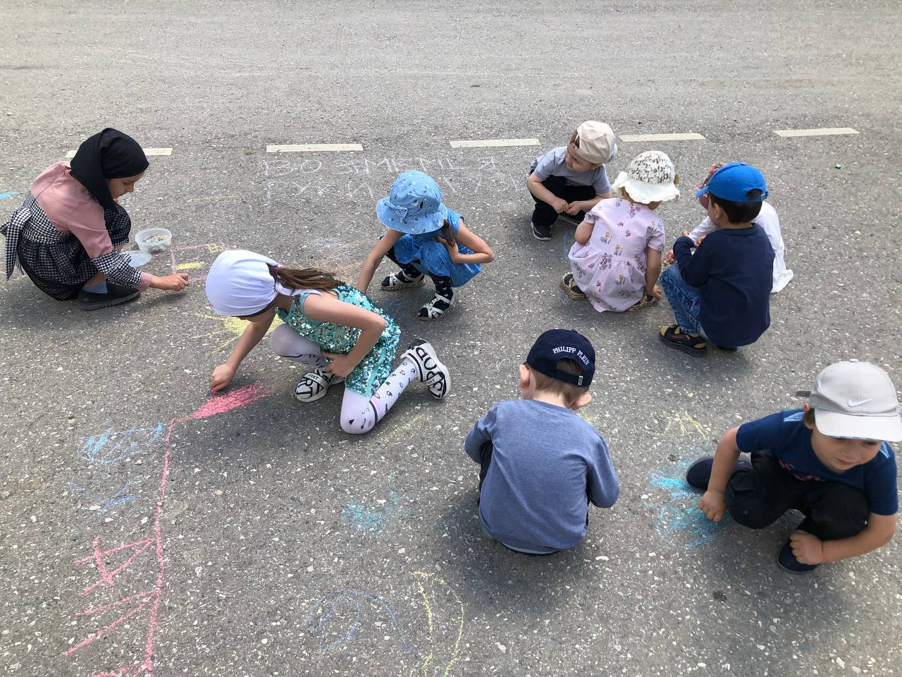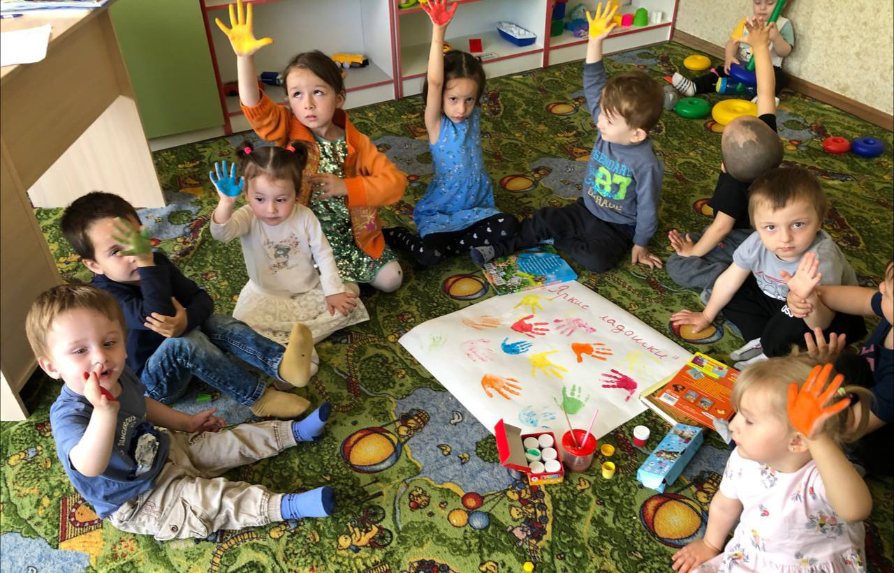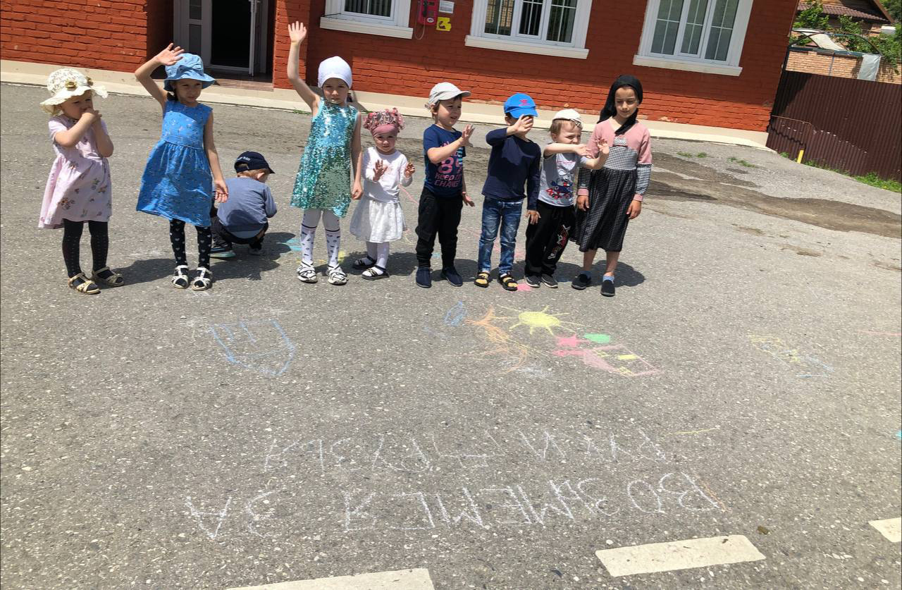 Проведение мероприятий, Дню защиты детей. 1 июня с детьми провели следующую работу: -Рисунки на асфальте «Возьмемся за руки друзья». - Акция «Подари смайлик другу», - Тематические беседы. - Игры с детьми 3-7лет. - «Яркие ладошки»