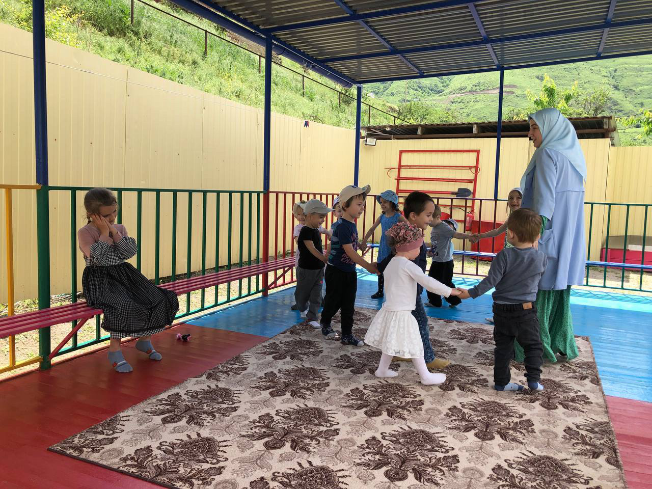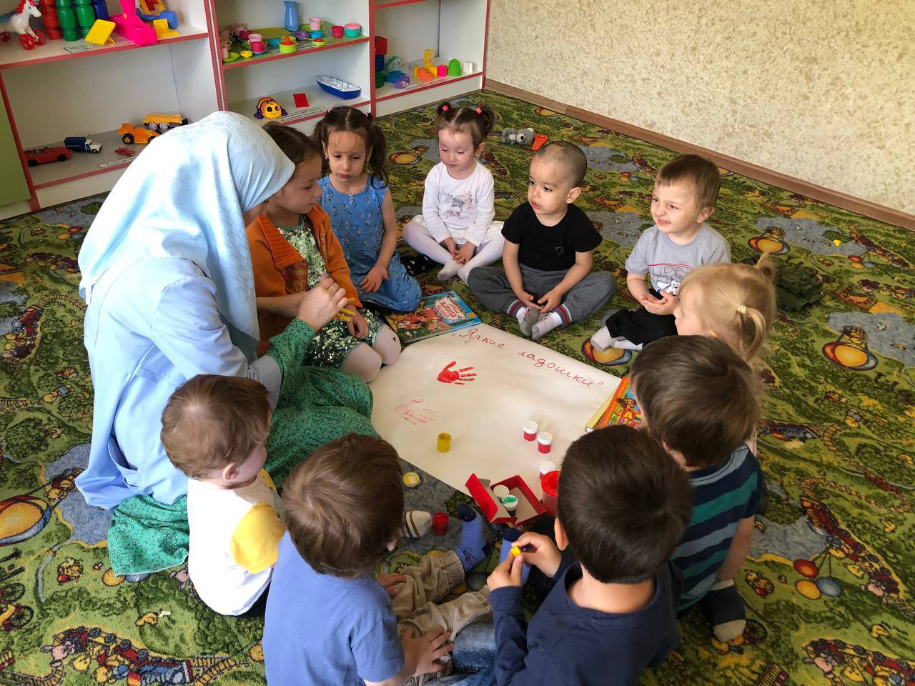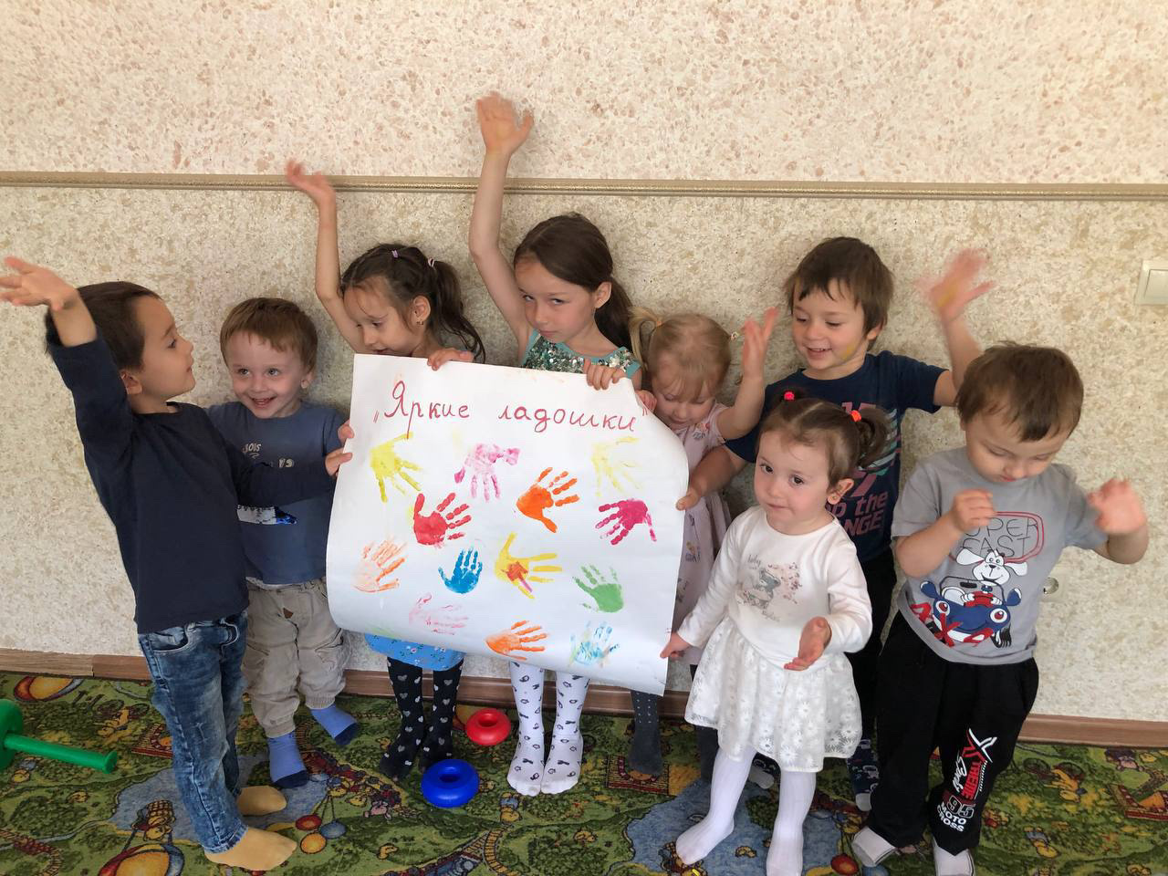 Проведение мероприятий, Дню защиты детей. 1 июня с детьми провели следующую работу: -Рисунки на асфальте «Возьмемся за руки друзья». - Акция «Подари смайлик другу», - Тематические беседы. - Игры с детьми 3-7лет. - «Яркие ладошки»