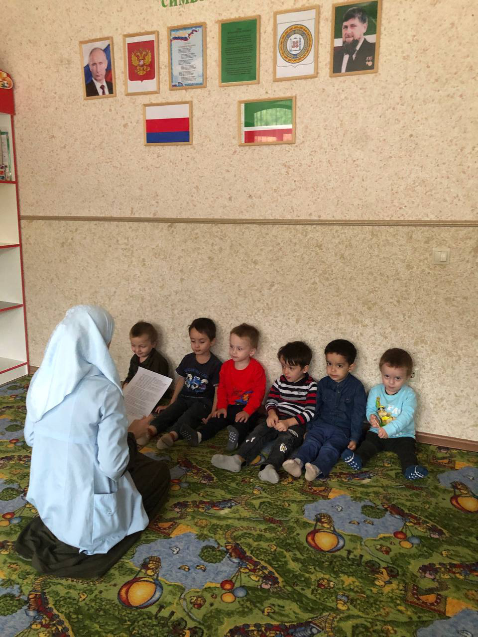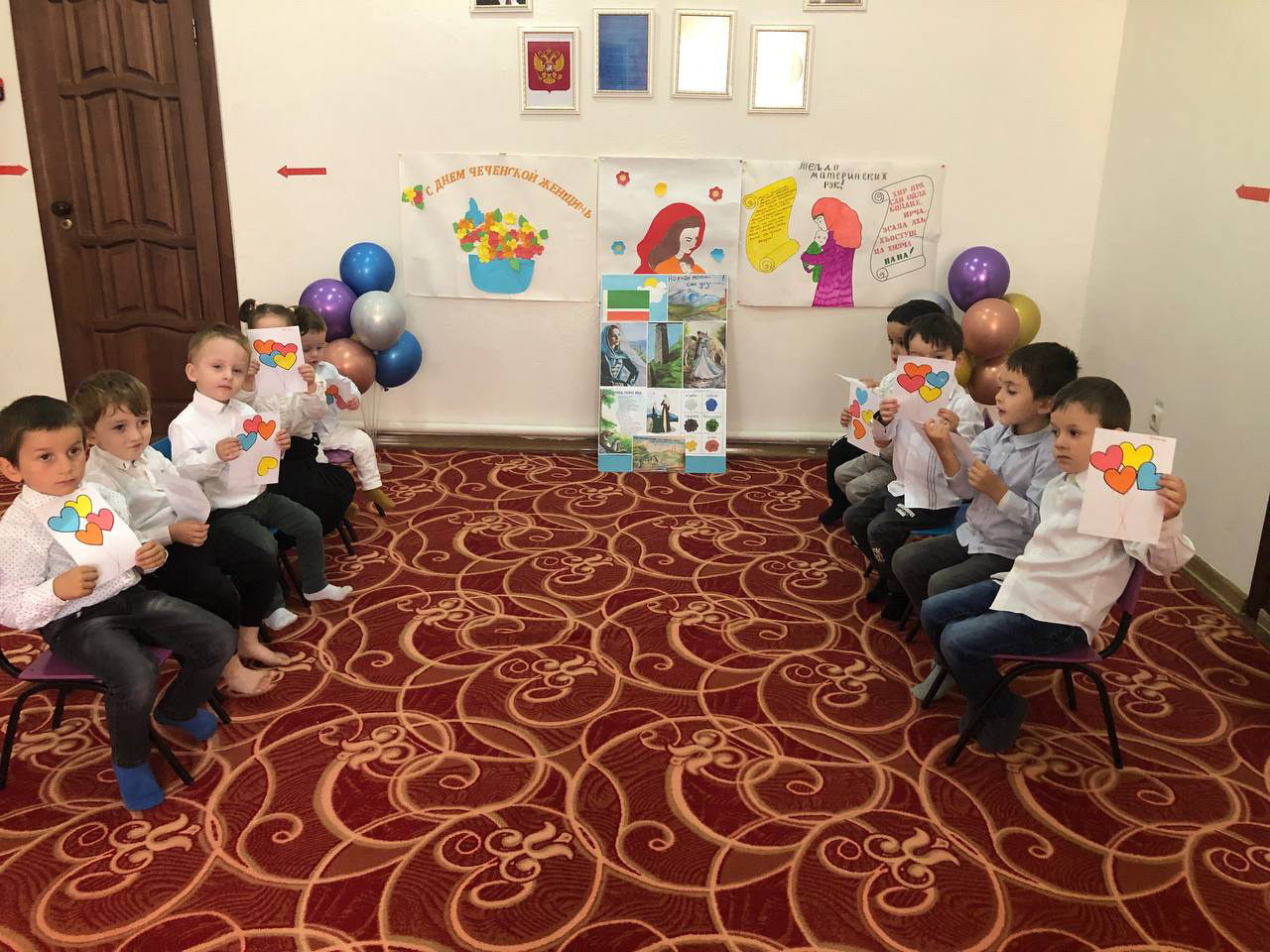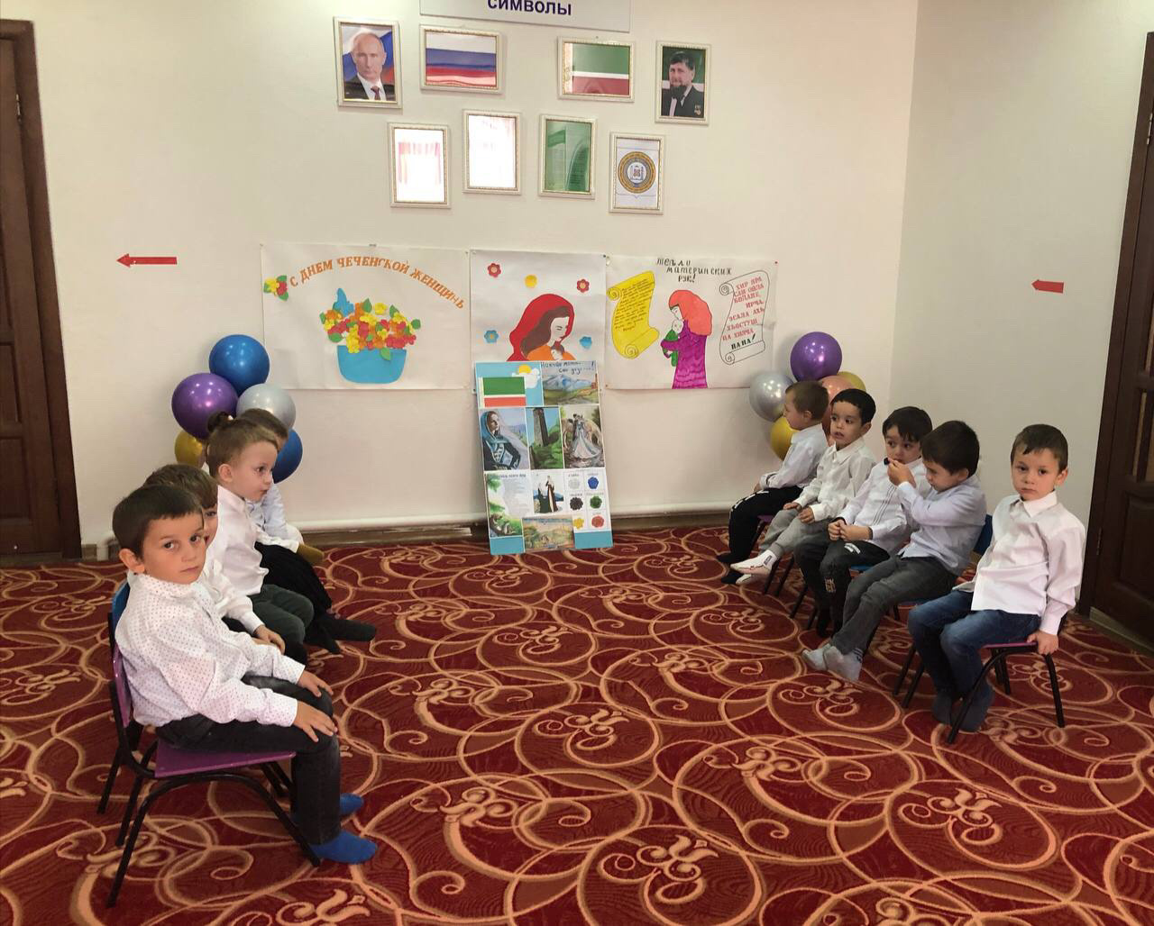 Проведение праздничных мероприятий, посвященных Дню чеченской женщины. Провели тематические беседы; Изготовили праздничные открытки для мам и бабушек; Провели праздничное мероприятие «Зударийн сий динчохь, къонахий ца эшна»