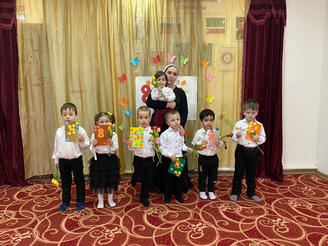 Проведение мероприятий, посвящённых празднованию Международного женского Дня 8 Марта. 7 Марта провели утренник «Праздник мамочки моей».